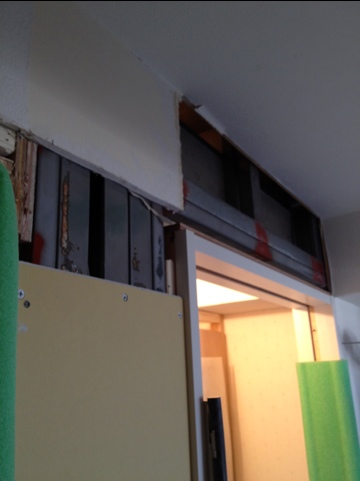 巧矢「某現場の既存の配管。床上の配管や写真のように、壁に這わしてある場所もあります。リフォームをする際、配管状況でプランに制限が掛かります。」