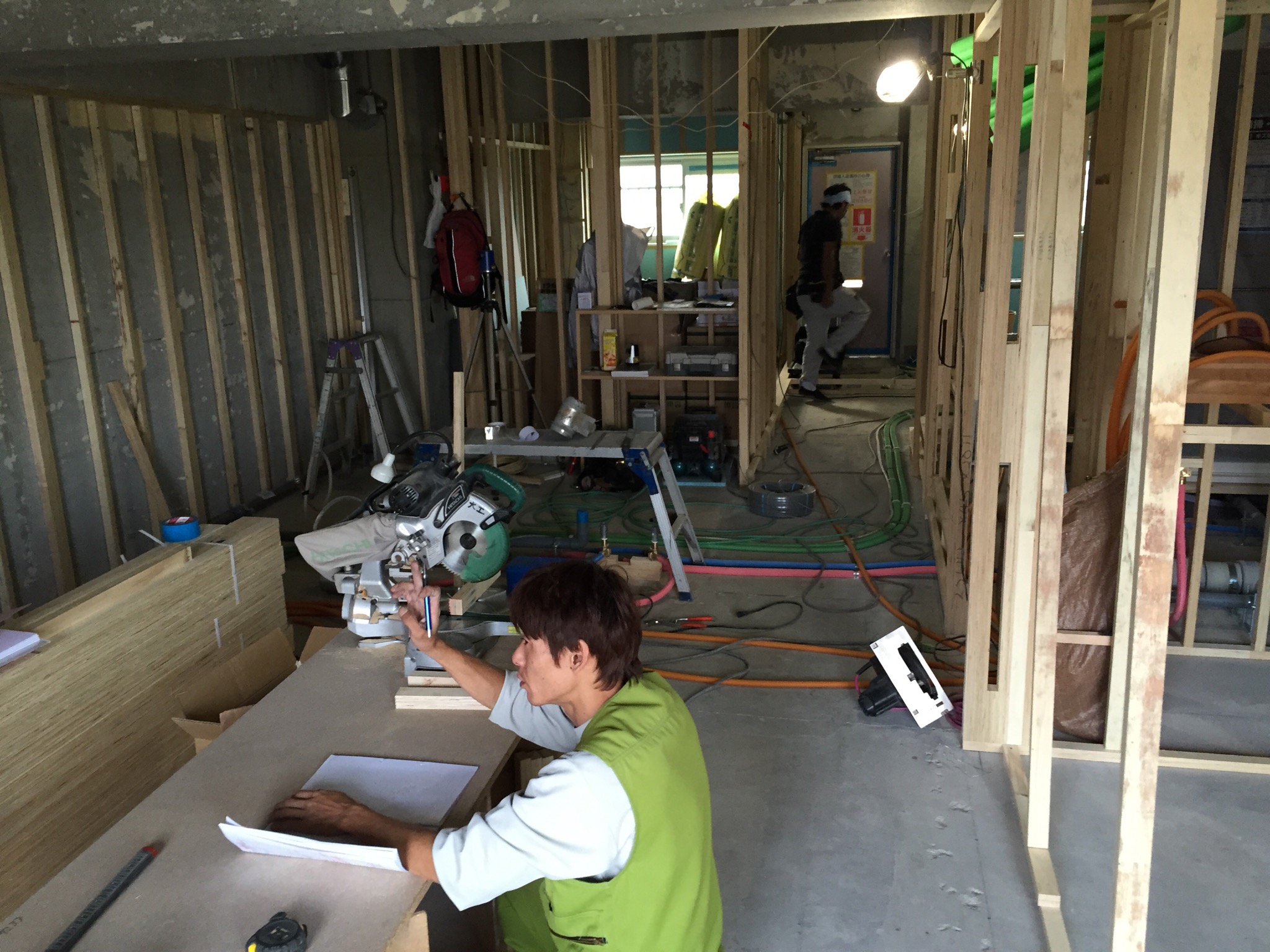 巧矢「某現場で大工さん考え中…。現場の棟梁になると、他の職人さんの手配・材料の手配・施工方法等々、考える事も山積み!なのですが、「叩いてなんぼ」と言う厳しい仕事です。