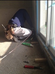 巧矢「今何の作業ですか?」大工「壁の下地を造っています。この上に、石膏ボードを貼って行きます。」巧矢「赤い線は何ですか?」大工「レーザーです。水平垂直を見ています。」